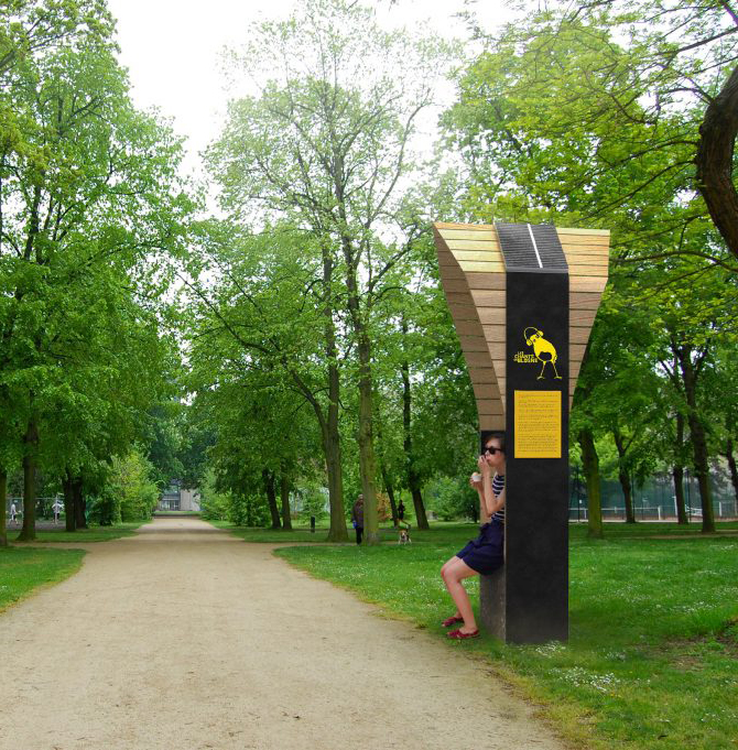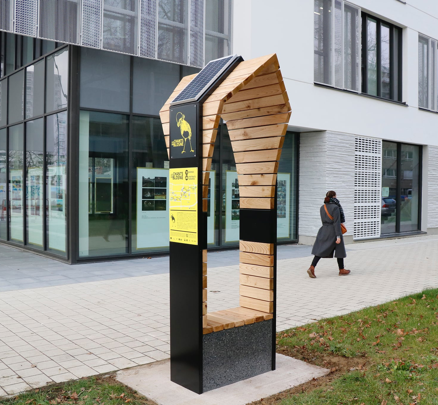 Studio Coat a été chargé de dessiner les dispositifs rendant visible ces contenus audio à travers 10 bornes sonores disséminées sur un trajet de 3km dans les espaces verts du quartier.